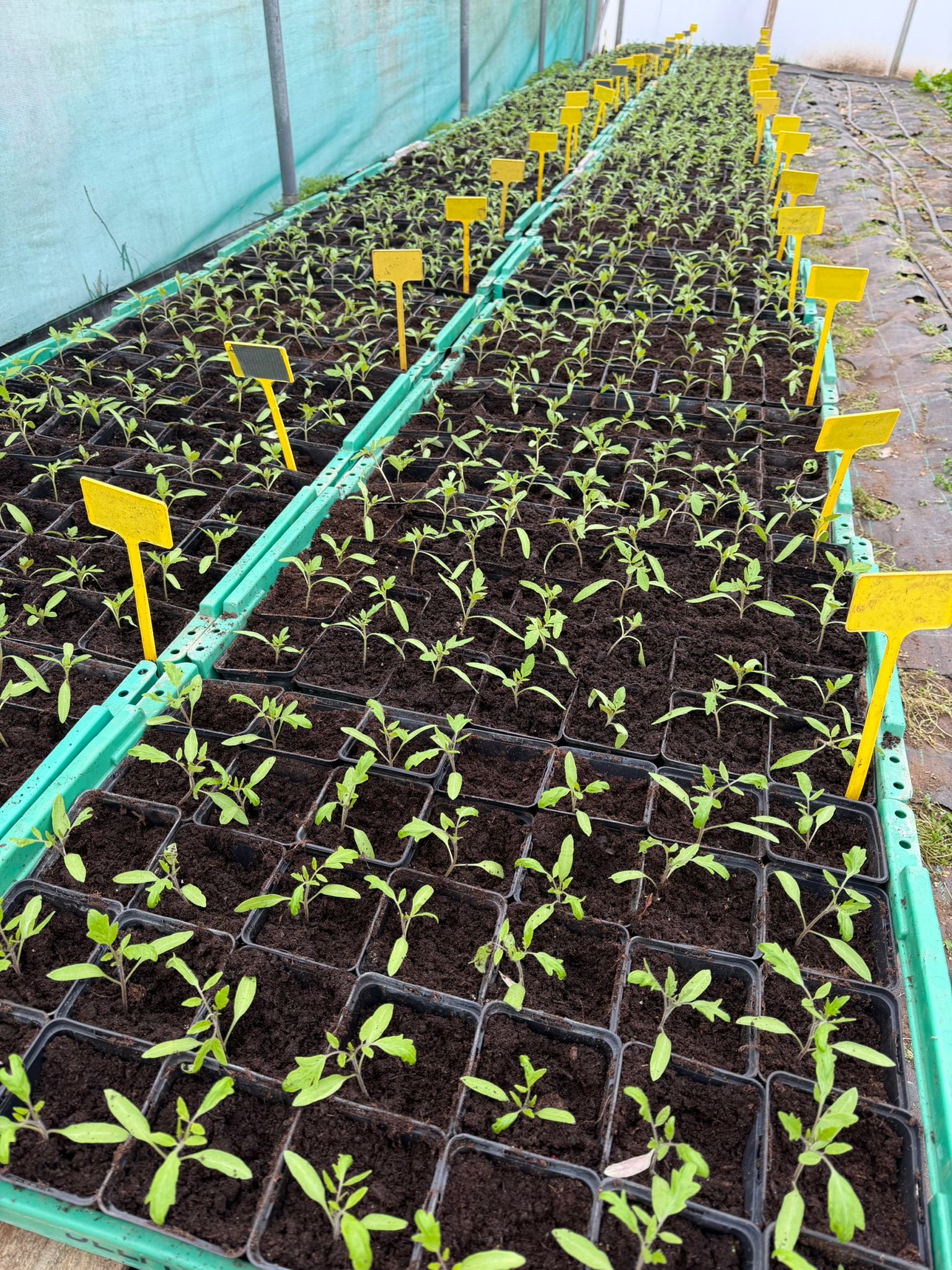 The great marathon of potting up tomatoes has begun. Tray after tray is being pricked out and moved on, giving each plant the root space it needs before tunnel planting later in the season.